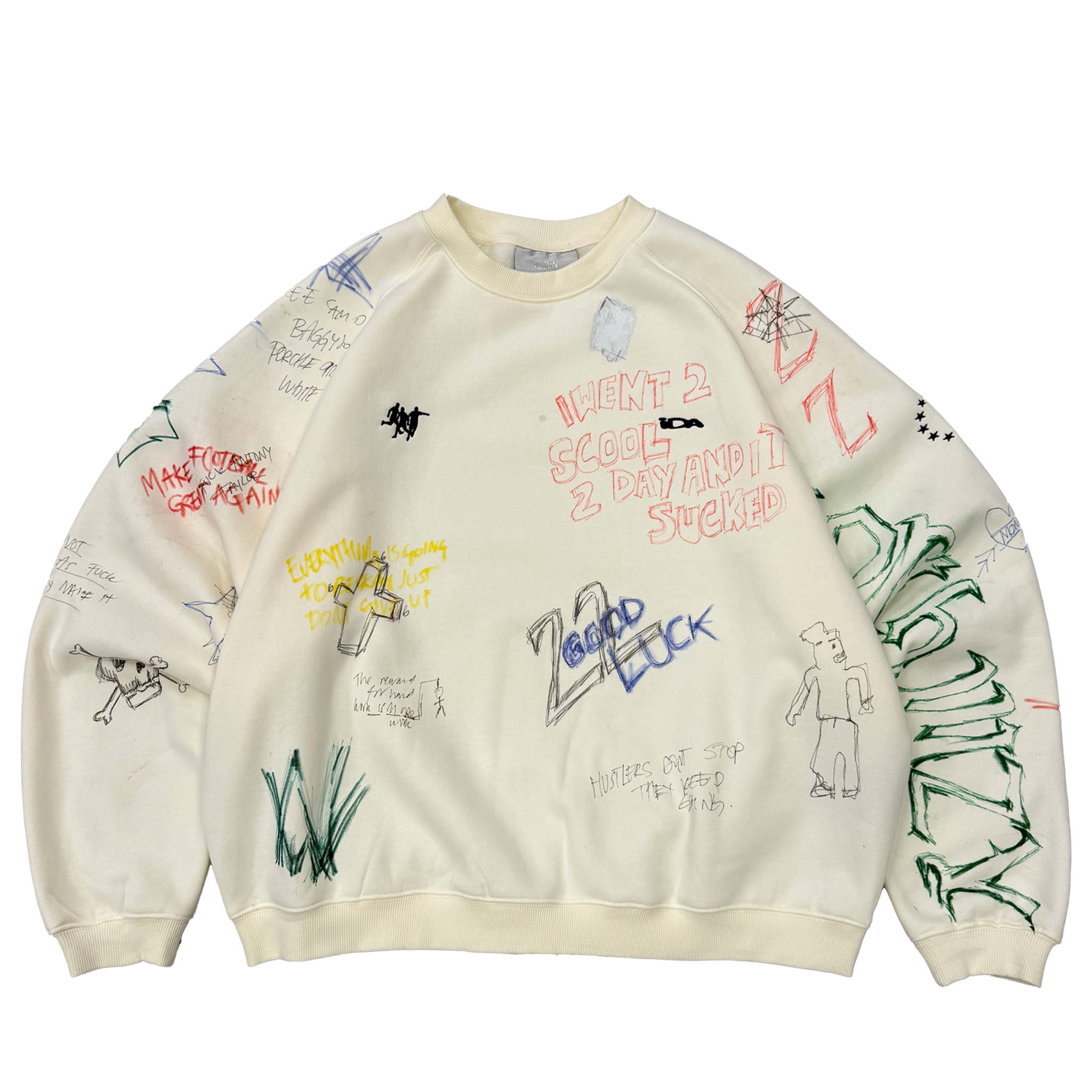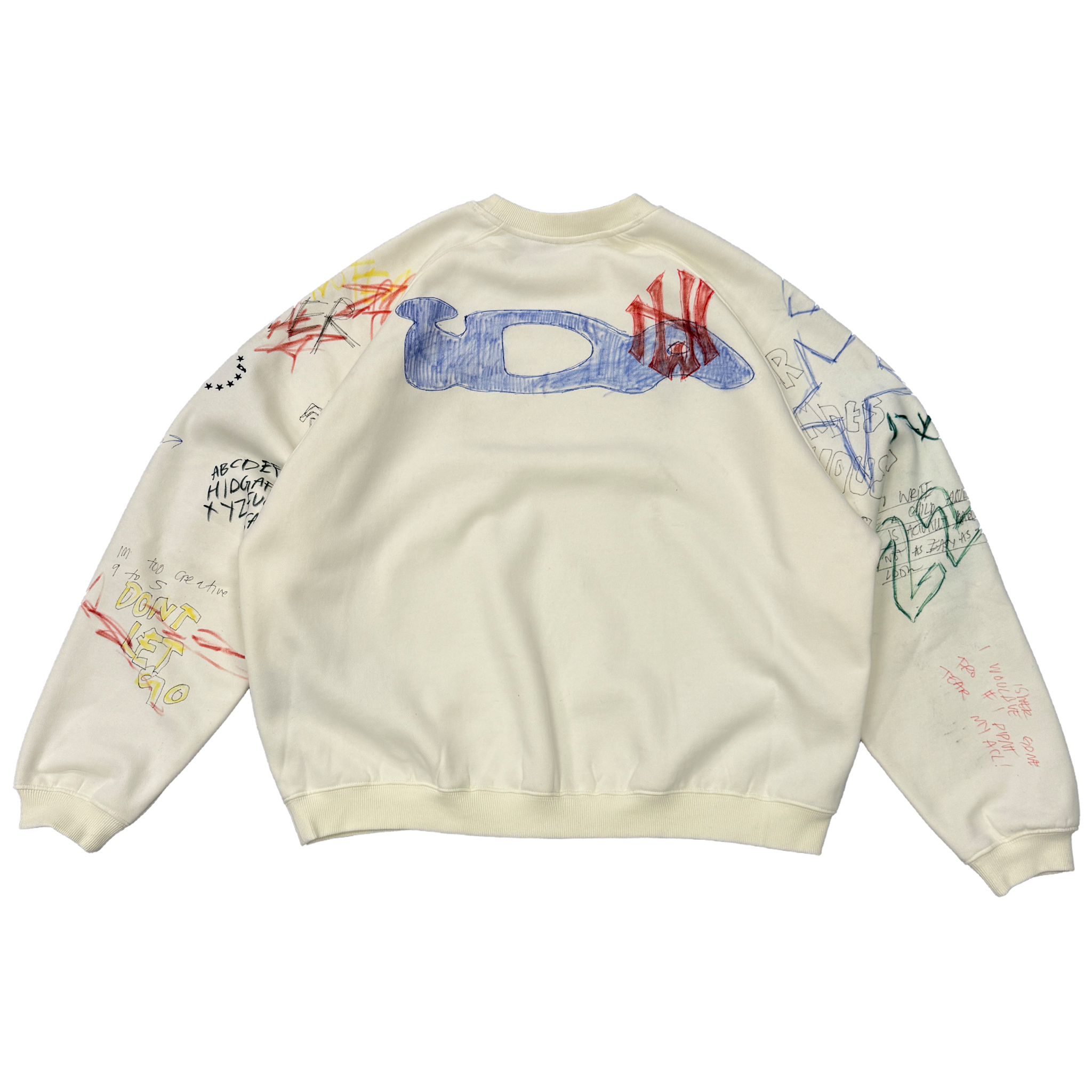 - CREAM CROPPED CREWNECK / DARK NAVY EMBROIDERY